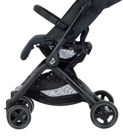 - Comfortable 4-wheel suspension with lockable front wheels for smooth strolls
